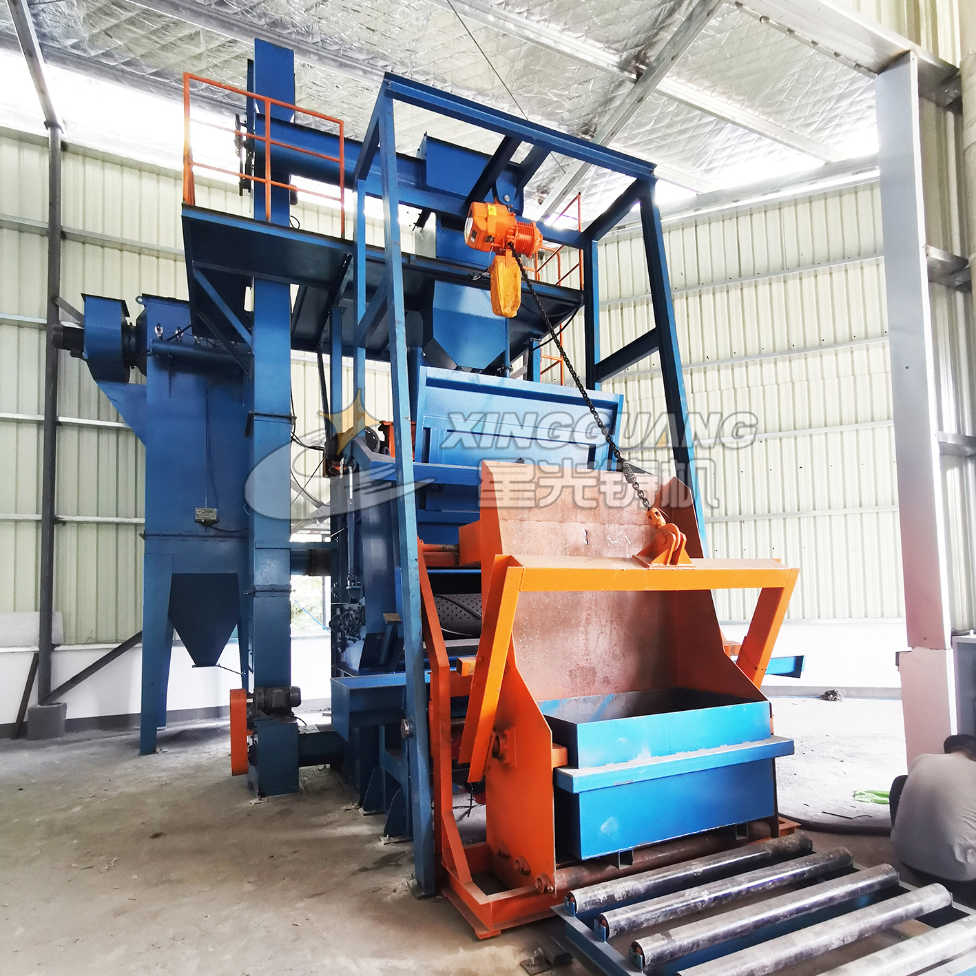 吊鉤式拋丸機分為單吊鉤和雙吊鉤,由吊鉤將工件送入清理室內,利用拋丸器將拋丸彈向工件,高速運轉之下,打磨掉工件所有部位的粗糙面,使得工件變得美觀,同時又增強工件的壓應力?!?/p>