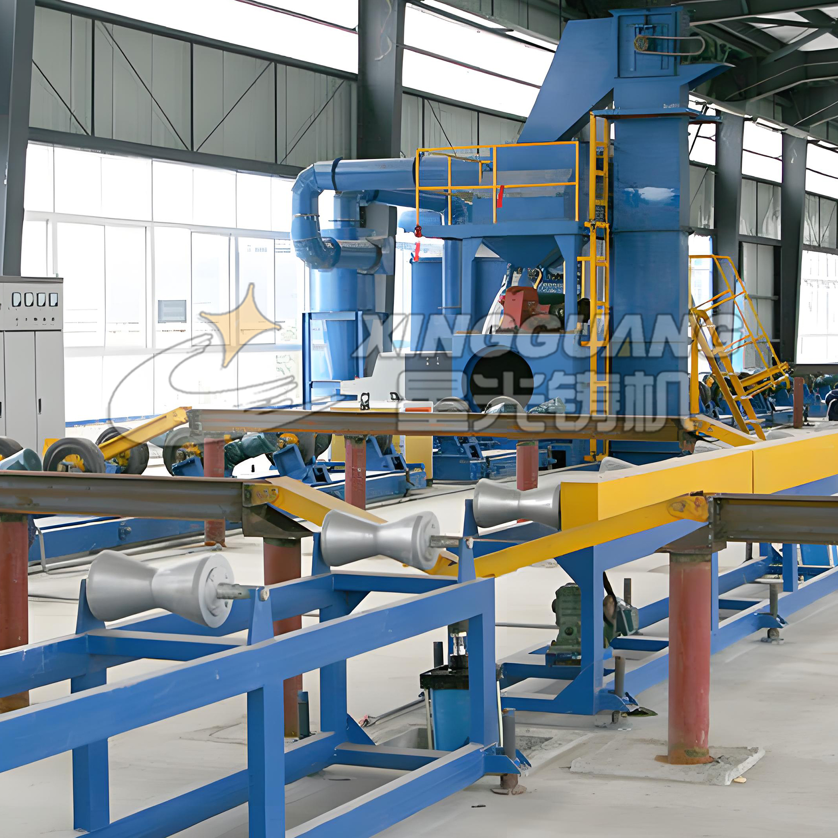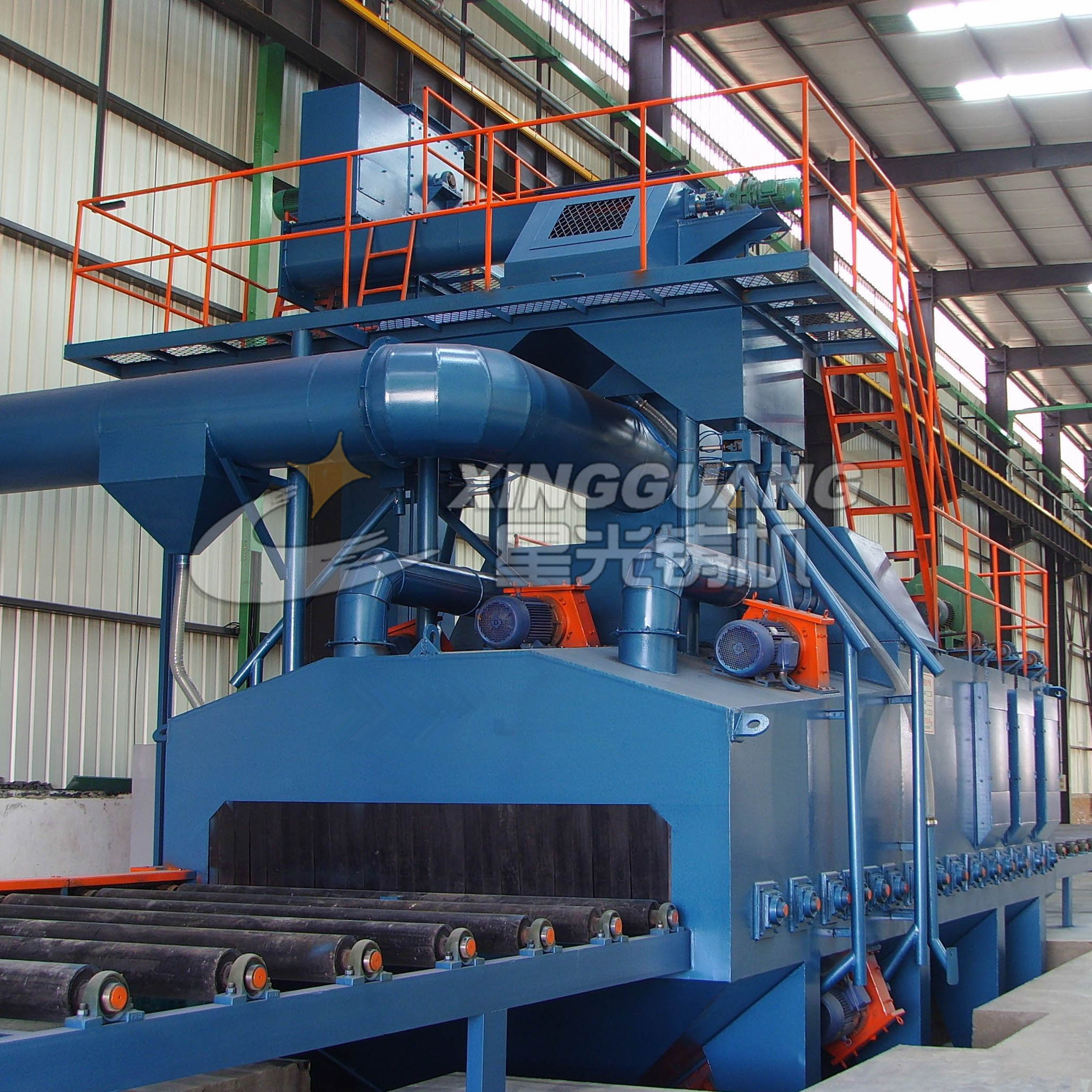 該系列屬于輥道式拋丸清理機,主要用于建筑、橋梁等行業用大型工字型鋼、H型鋼等尺寸較高的鋼結構消除內應力及表面除銹清理?!?/p>